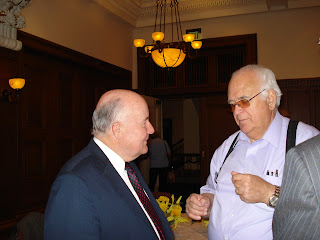 W. Herbert Klopfer is the former president of the Salt Lake City Eagle Gate Stake and served as a member of the 1985 Hymnbook Committee and the General Music Committee. His current assignments include coordinating music at Church headquarters and providing music support for regional stake conference and worldwide training broadcasts. (http://www.ldschurchnews.com/articles/51496/Power-in-music-to-praise-the-Lord.html)Brother Klopfer shared several stories with us and it was a wonderful opportunity to listen and be filled with the Spirit. My Dad knows Brother Klopfer because he lived in our ward when I was a baby. So, here is a picture of my Dad and Brother Klopfer.